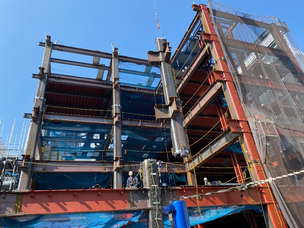 この方法は、下から順に鉄骨を積み上げていく作業方式です。